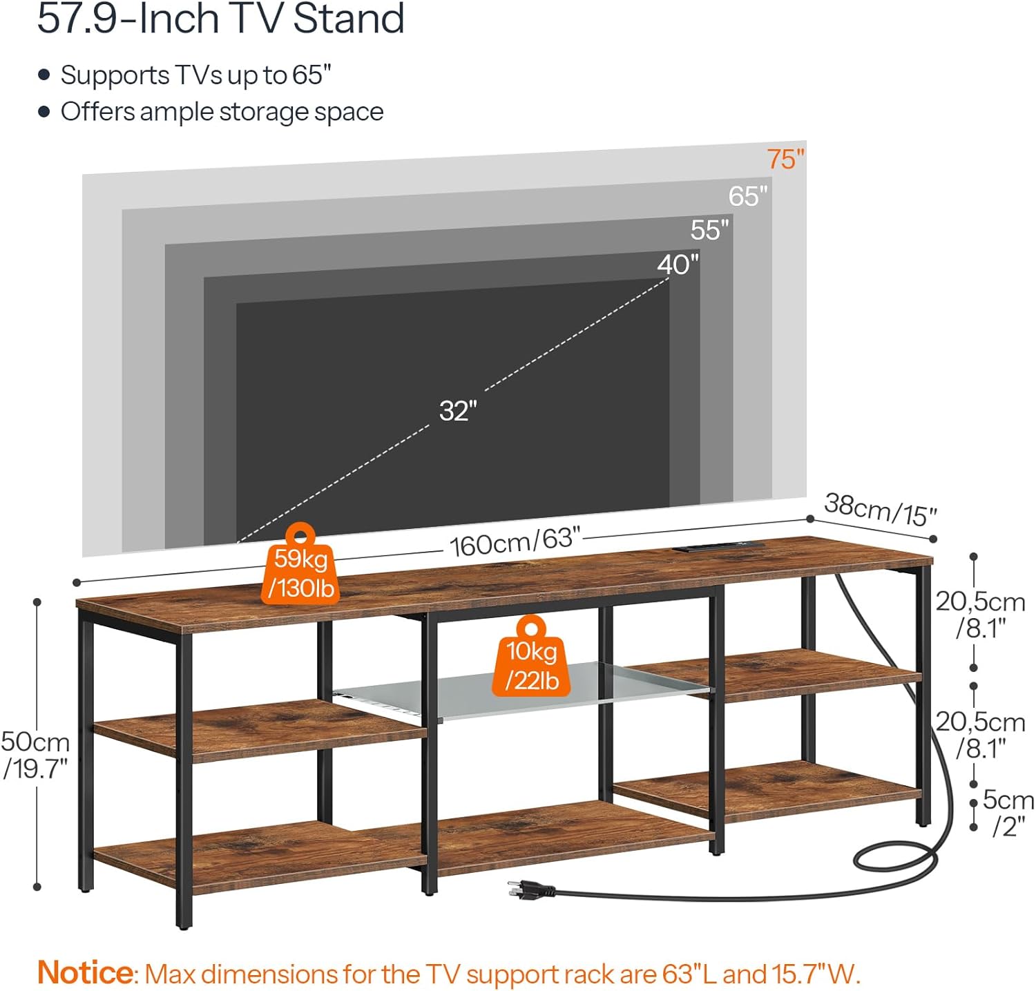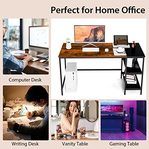 Multifunctional Computer Desk, Industrial Study Writing Desk w/Removable Storage Shelf, Heavy-Duty Metal Frame, 55 Inch Desk for Home Office, Gaming Room, Bedroom (Rustic Brown)