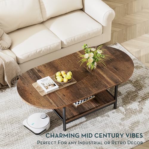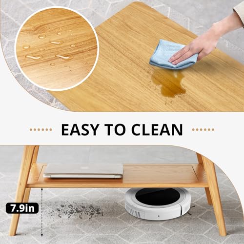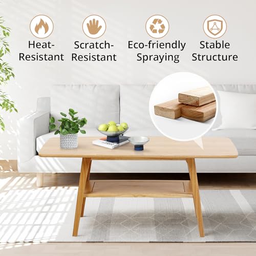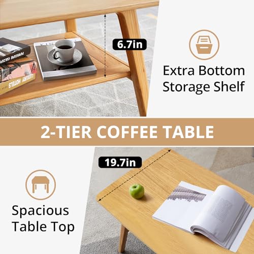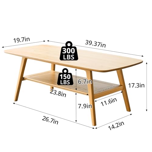 Coffee Table, High End Solid Wood Coffee Table with Storage Shelf and Open Tabletop, 2-Tier Coffee Table Rectangular Coffee Table for Living Room, Office, Easy Assembly(31.5 * 19.69 * 17.32 Inch)
