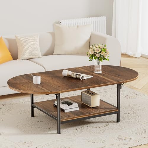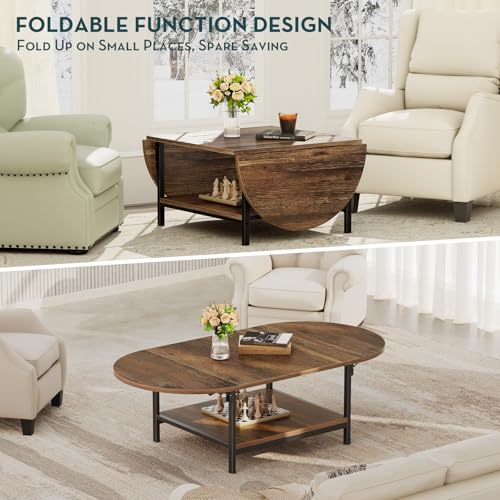 SAYGOER Black Coffee Table Modern Extended Coffee Tables with Storage for Living Room 2-Tier Unique Center Table with Two Foldable Panel for Any Large or Small Space, All Black