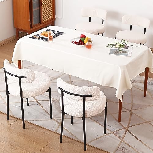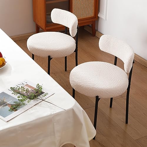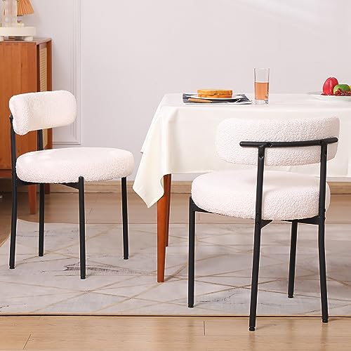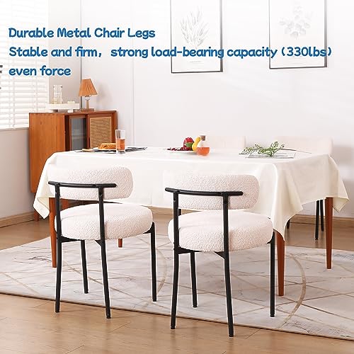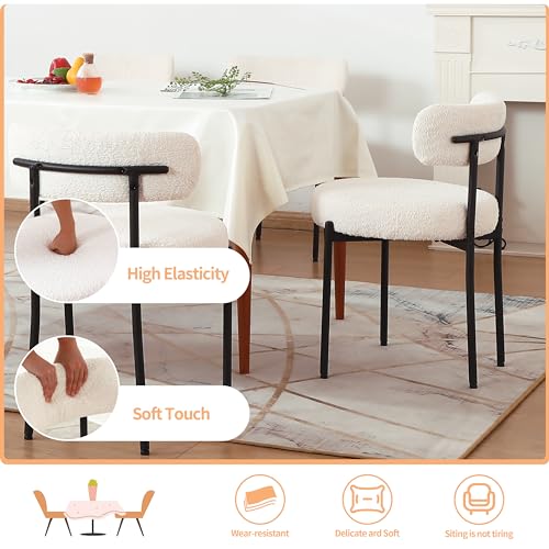 ALEAVIC Modern Dining Chairs Set of 2, Mid Century Curved Backrest Round Upholstered Kitchen Room Chairs, Comfortable Boucle Dining Chairs with Metal Legs, Orange