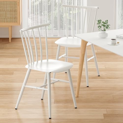 Metal Dining Chairs Set of 2, Modern Kitchen & Dining Room Chairs for Dining Room, Windsor Chairs Dining Chairs with Metal legs, Armless Dining Chair with Comfortable Seat
