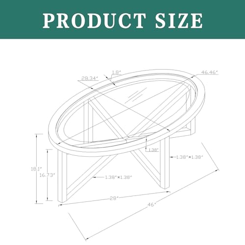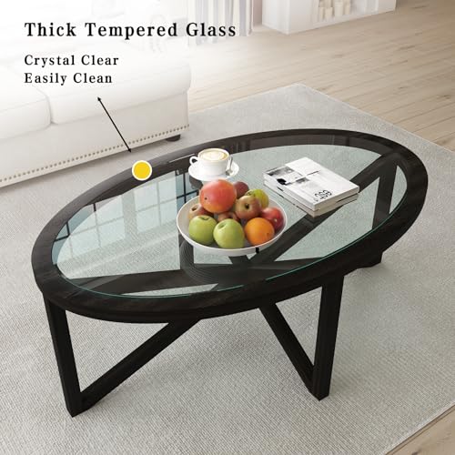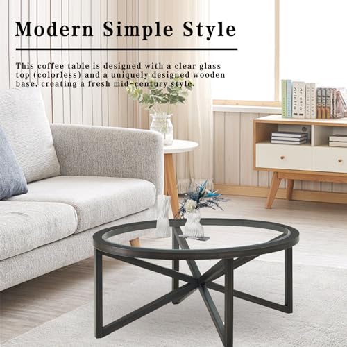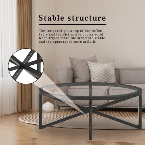Round Glass Coffee Table,Black Circle Coffee Table with Tempered Glass Top and Solid Wood Base, Simple & Modern Center Table,Small Coffee Table for Living Room, Apartment Black 46.00 * 28.34 * 18.00