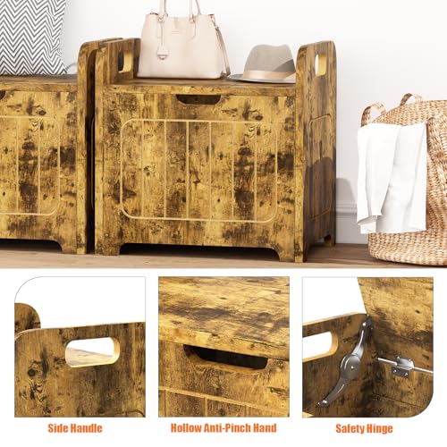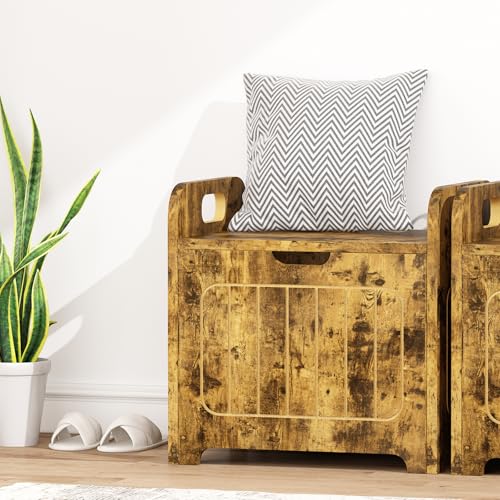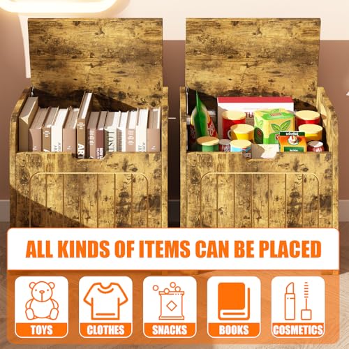 Brown Storage Chests, Small Cube Storage Organizer,Wooden Storage Bin With Handle For Store Books Clothes,Small Square Nightstand For Entryway,Bedroom