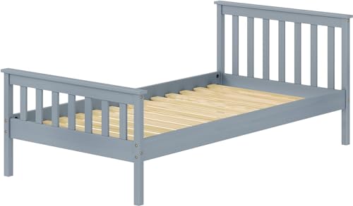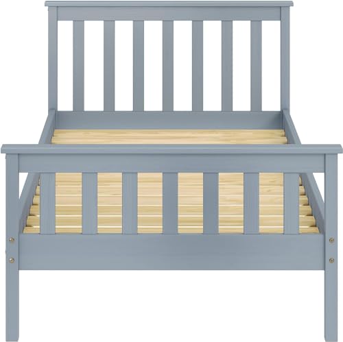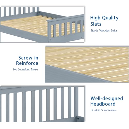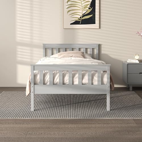 Full Bed Frames with Headboard, Solid Wooden Platform Bed with Corner, Modern Low Profile Bed Frame, No Box Spring Needed, Grey
