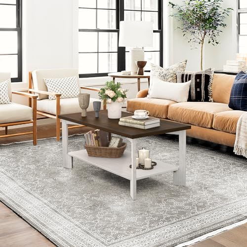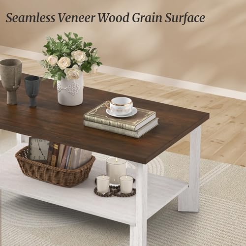 Rectangle Coffee Table, 39" Rectangle Rustic Modern Coffee Table, Sofa Table with 2-Tier Storage Shelf for Living Room, Walnut