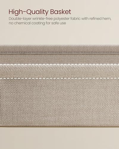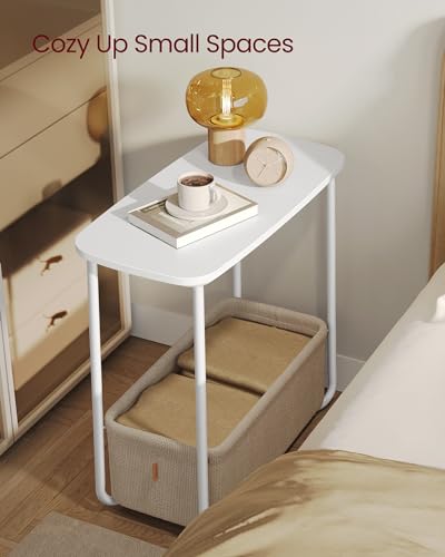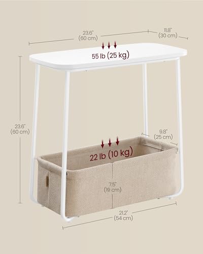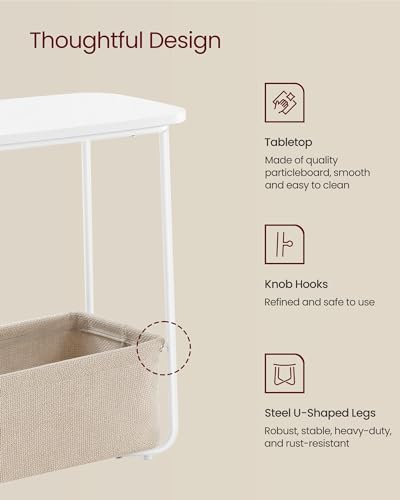 VASAGLE End Table, Side Table with Fabric Basket, Modern Nightstand, Rectangular Bedside Table, for Living Room, Bedroom, Matte White and Camel Brown ULET230W10
