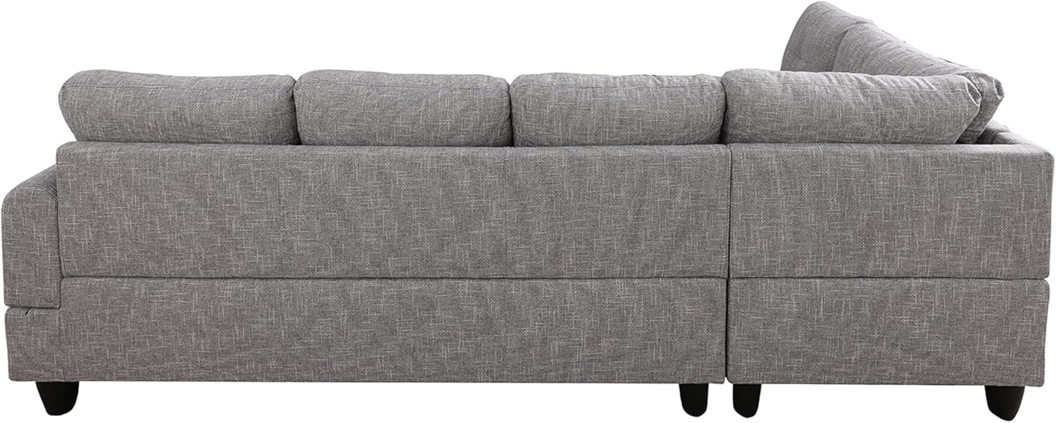 3-Piece Flannel Sectional Sofa Set with Left Facing Chaise and Storage Ottoman, Pillow, L-Shaped Couch for Living Room, Office, Apartment, Grey