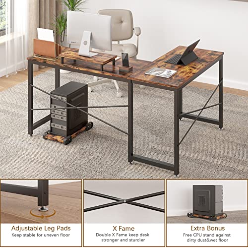 Computer Desk, L Shaped Desk with Large Desktop, Corner Desk with Monitor Stand PC Laptop Table Computer Workstation for Home Office (Rustic Brown)
