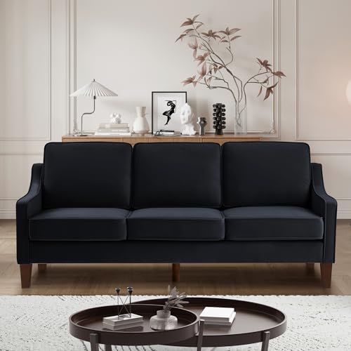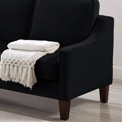 Modern Accent Chair, Velvet Upholstered Armchair with Wooden Legs, Single Sofa Chair for Living Room, Bedroom, Office, Comfy Reading Chair for Study Room, Black 1 Seat