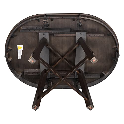 Expandable Round Dining Table with 16" Leaf and Rubber Wood Tabletop, 42”-58” Wood Farmhouse Style Kitchen Table with X-Shaped Base for Dining Room Kitchen (Espresso)