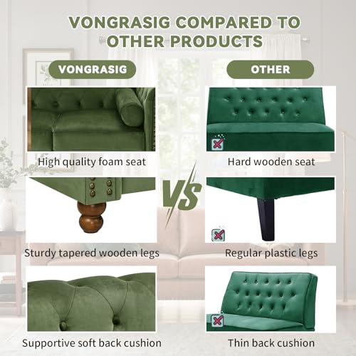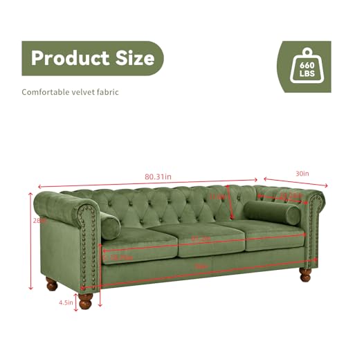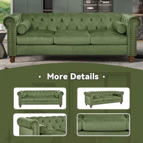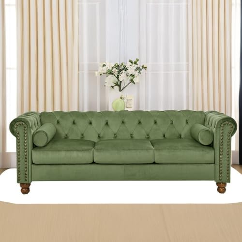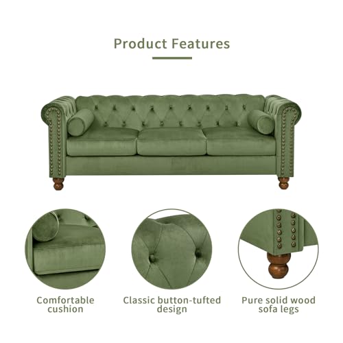 74.5" Velvet 3 Seater Sofa Sofa Couch Chesterfield Sofa Tufted Couch with 2 Pillows for Living Room Apartment Office Lounge Green