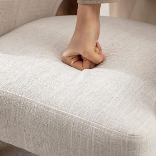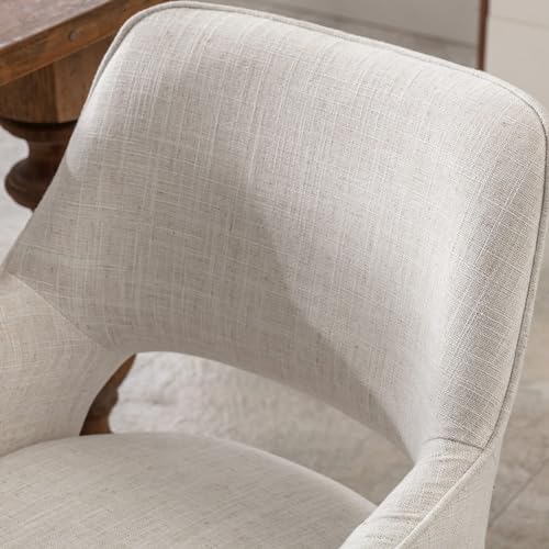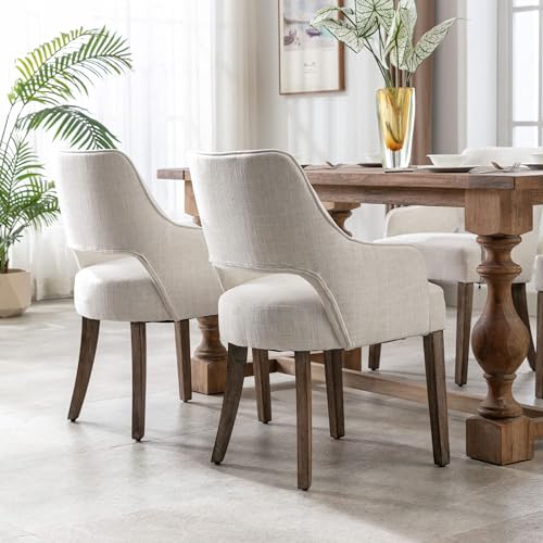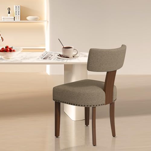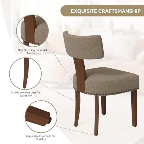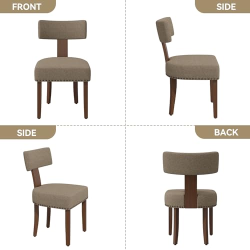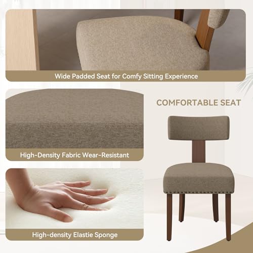 Upholstered Dining Chairs Set of 6, Mid Century Modern Dining Room Chairs Kitchen Chairs Linen Fabric and Curved Backrest Brown