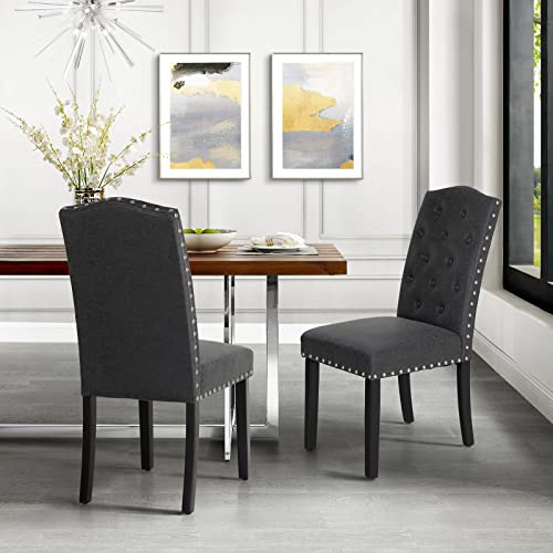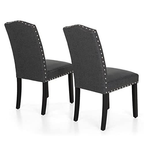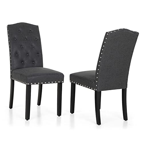 Sophia & William Tufted Kitchen Dining Chairs Set of 2 Faux Leather Upholstered Dining Room Chairs with Ring Pull Trim and Decorative Nailhead, Rubber Wood Dining Chairs for Bedroom,Black