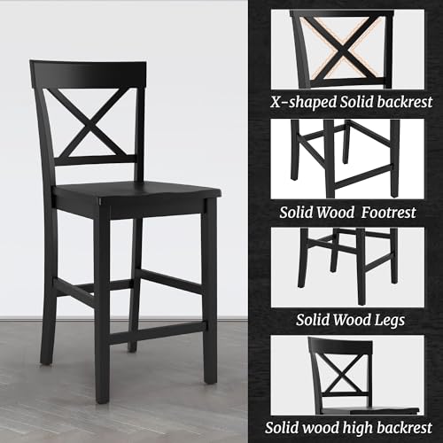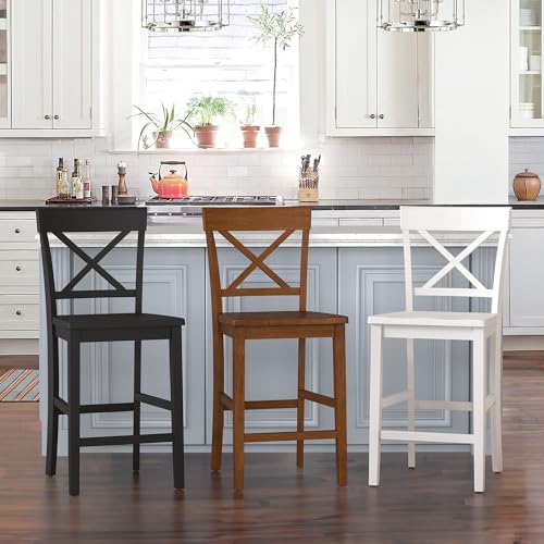 Counter Height Bar Stools Set of 4, 24" H Wooden Counter Stools with Back and Footrest, X-Back Farmhouse Barstools for Kitchen Island, Home Bar, White
