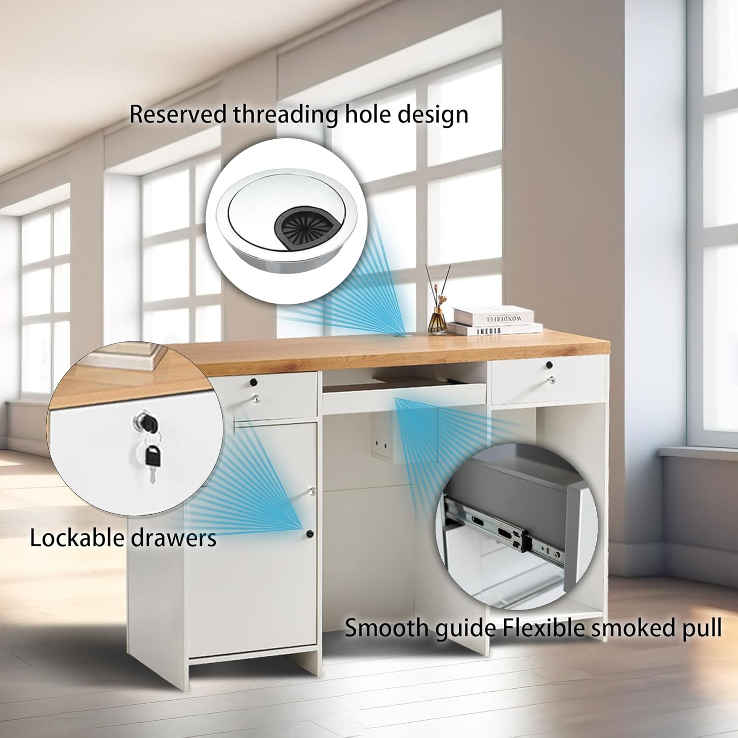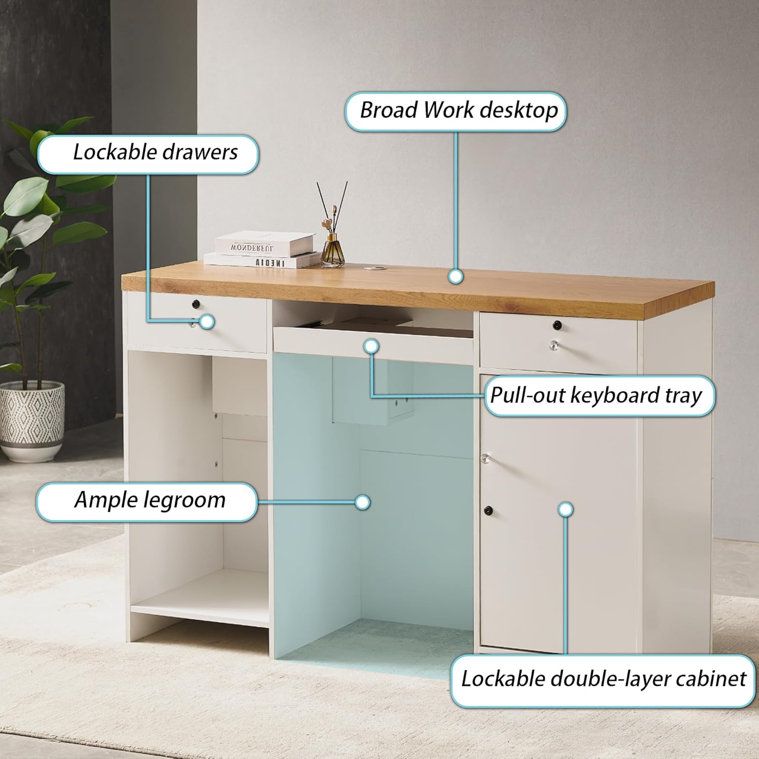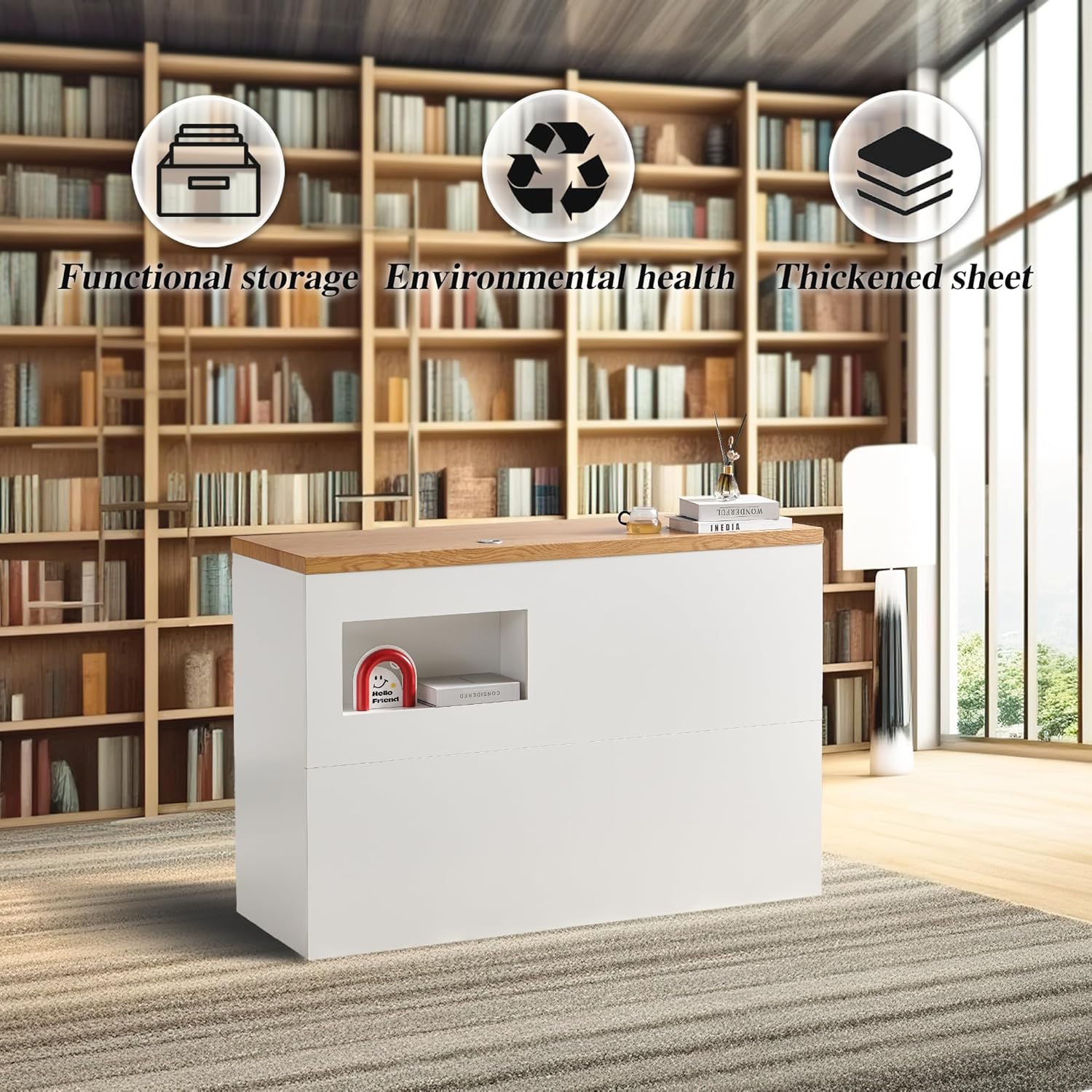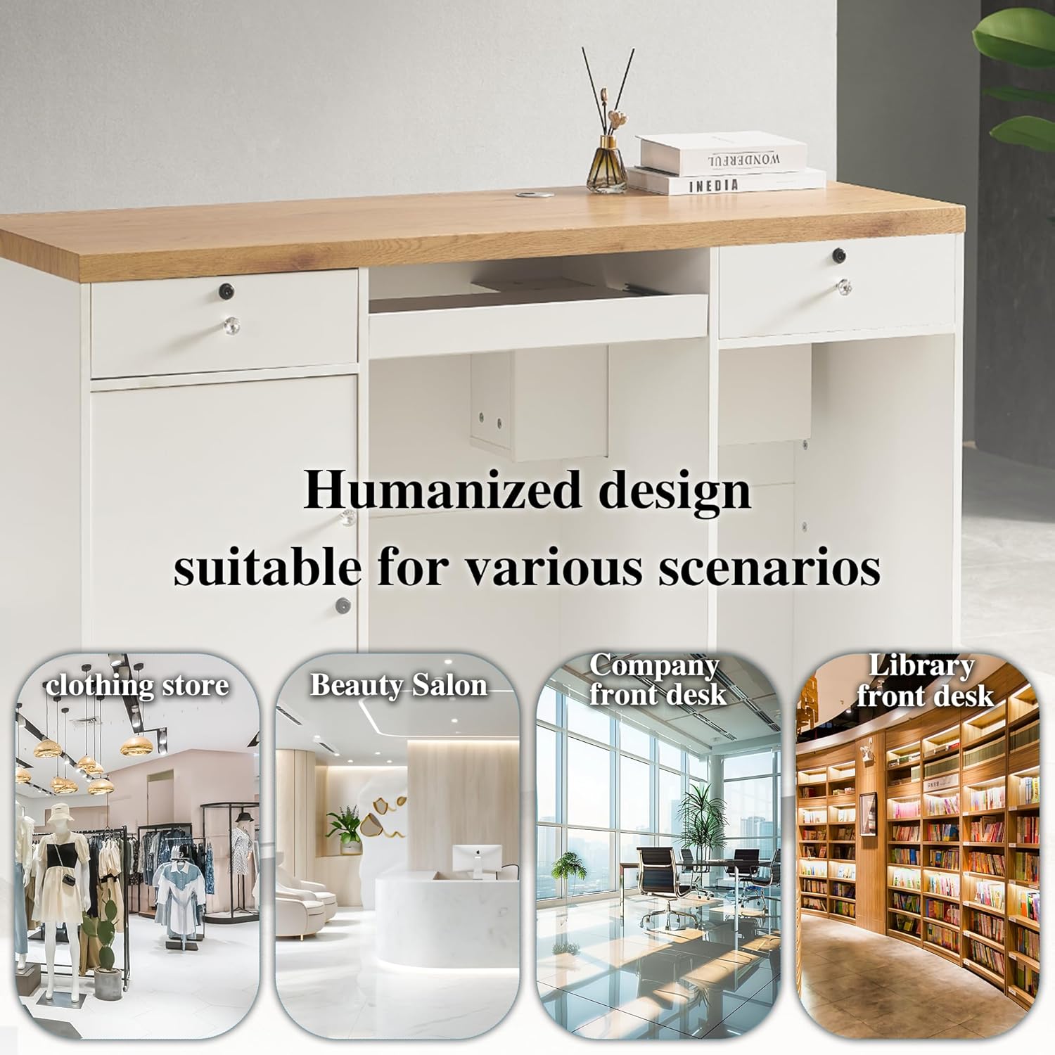 Reception desk counter,55.12" Front Counter Table for checkout retail receptionist desk with Lockable drawers, reception desk office for beauty Salon Lobby Reception Room,White