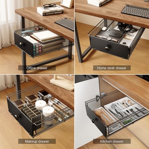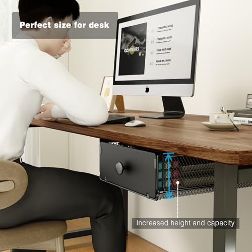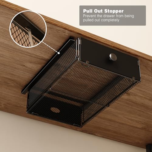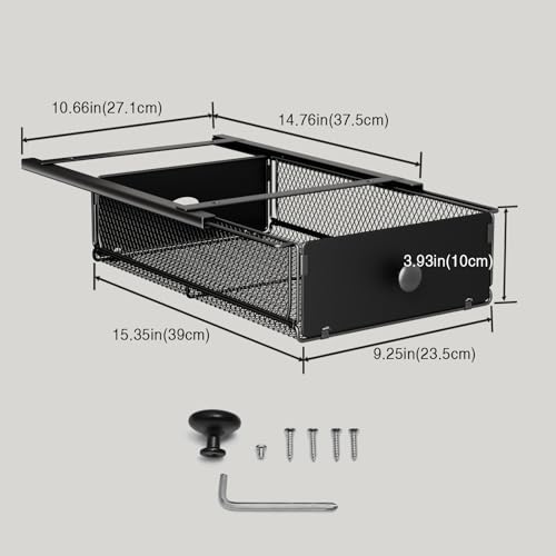 VOLDRA 2 Pack Under Desk Drawer, Metal Under Desk Organizer and Storage Heavy Duty Slide Out Drawer for Office Desk Undermount Table Drawer-Black(15.2" D*9.2" W*3.94" H)