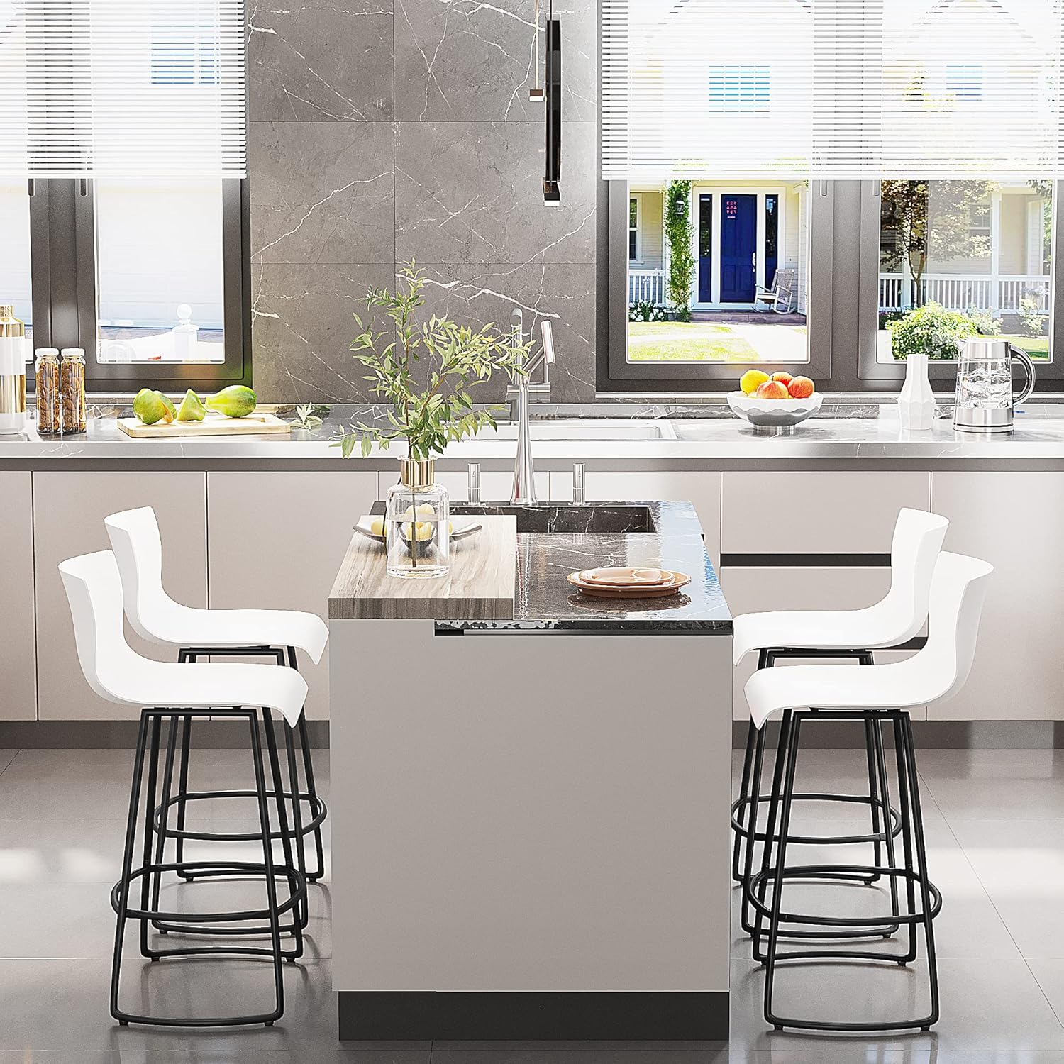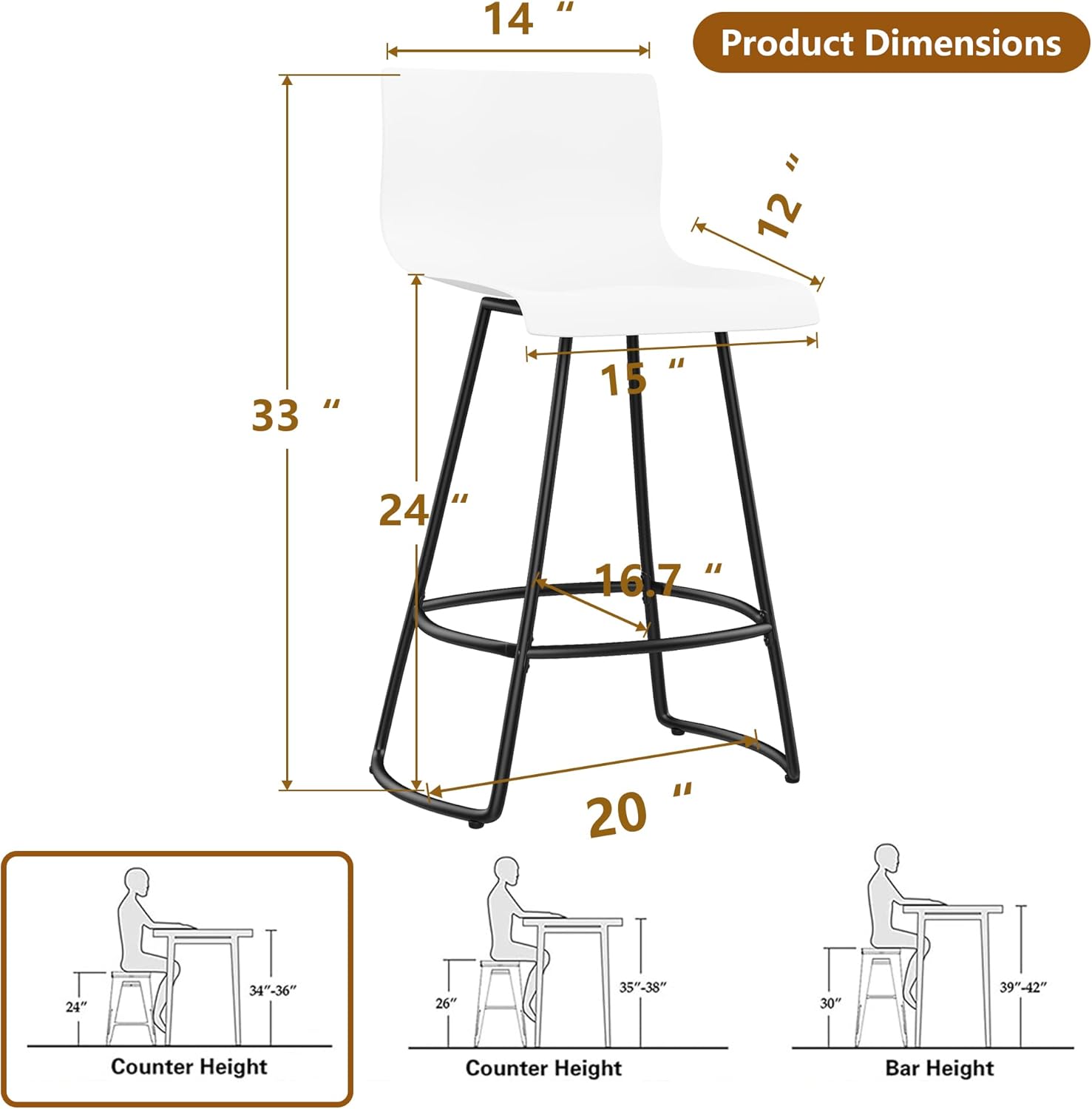 Bar Stools Set of 4 Bar Stools Counter Height Bar Stools Modern Swivel Bar Stools Bar Chairs with Back Plastic 24" Metal Bar Stools Counter Height,White