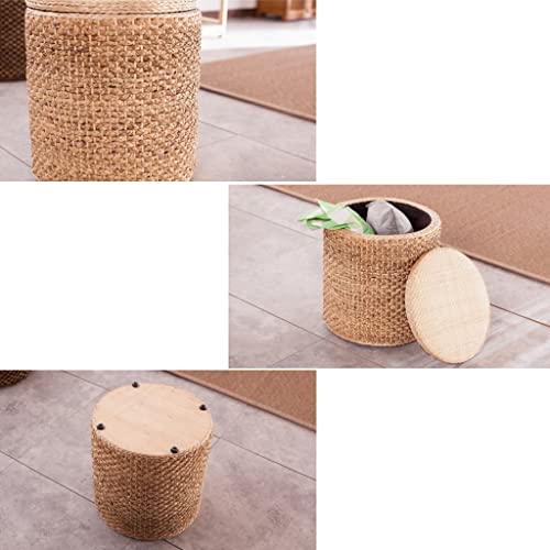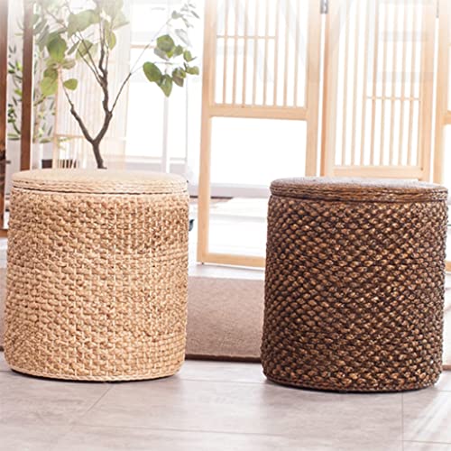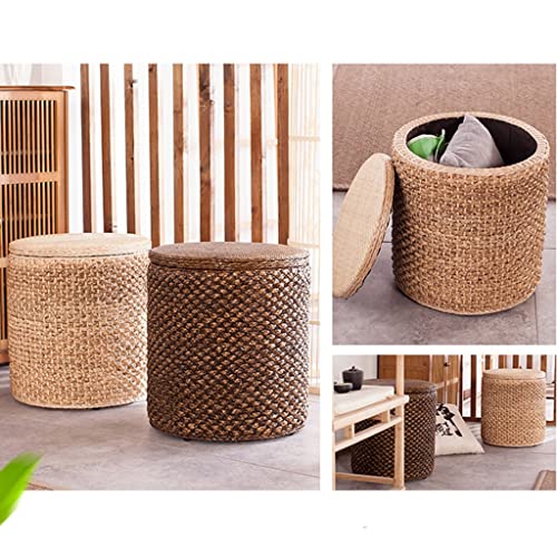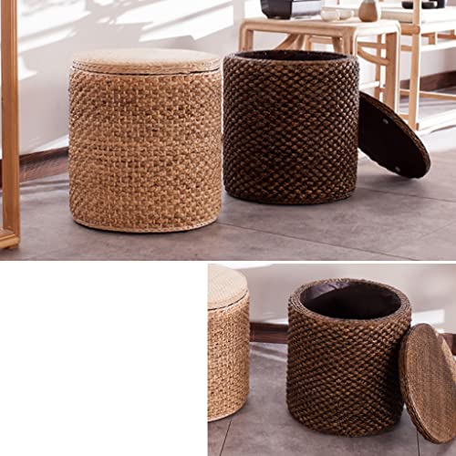 Eco-Friendly Rattan Storage Ottoman, Round Ottomans Foot Rest Pouf Ottoman Foot Stools Cube Decoration Furniture Ottoman Seating Storage Change Shoes Bench Living Room Study (Color : Brown)