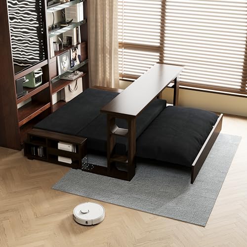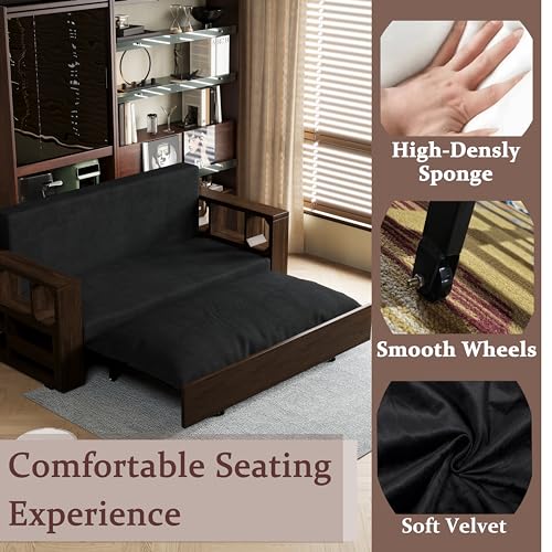 52'' Pull Out Sofa Couch Bed, 3-in-1 Convertible Sleeper Loveseat Sofa Couch with Side Storage, Hidden Office Desk, Velvet Futon Sofa Bed Couch for Living Room, Small Space, Beige