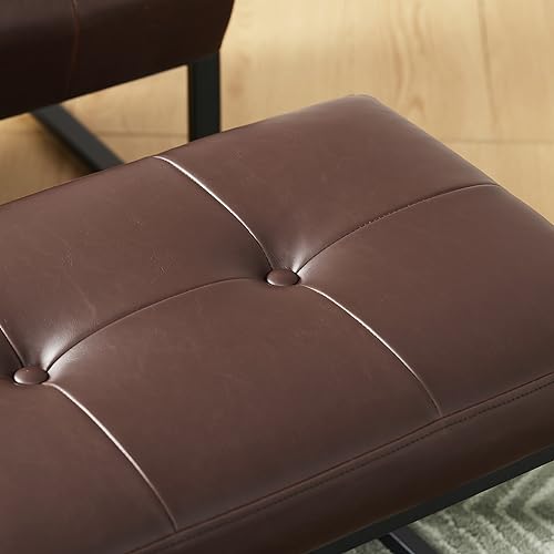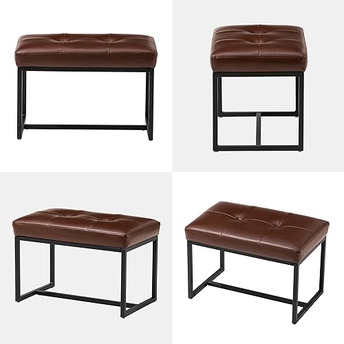 glitzhome Ottoman Bench Pack of 2, Modern PU Leather Vanity Stools Chairs with Metal Frame, Makeup Stool Padded Foot Rest Stool for Living Room Vanity, Entryway, Bathroom,Light Brown