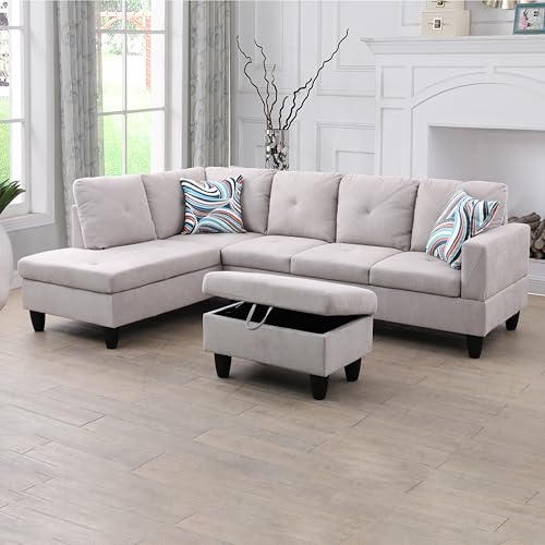 NicBex 35 Inch Storage Ottoman Modern Small Ottoman with Storage Tufted Ottoman Foot Stool with Legs Rectangular Foot Rest for Couch Flannel Ottoman for Bedroom, Living Room, Dark Brown