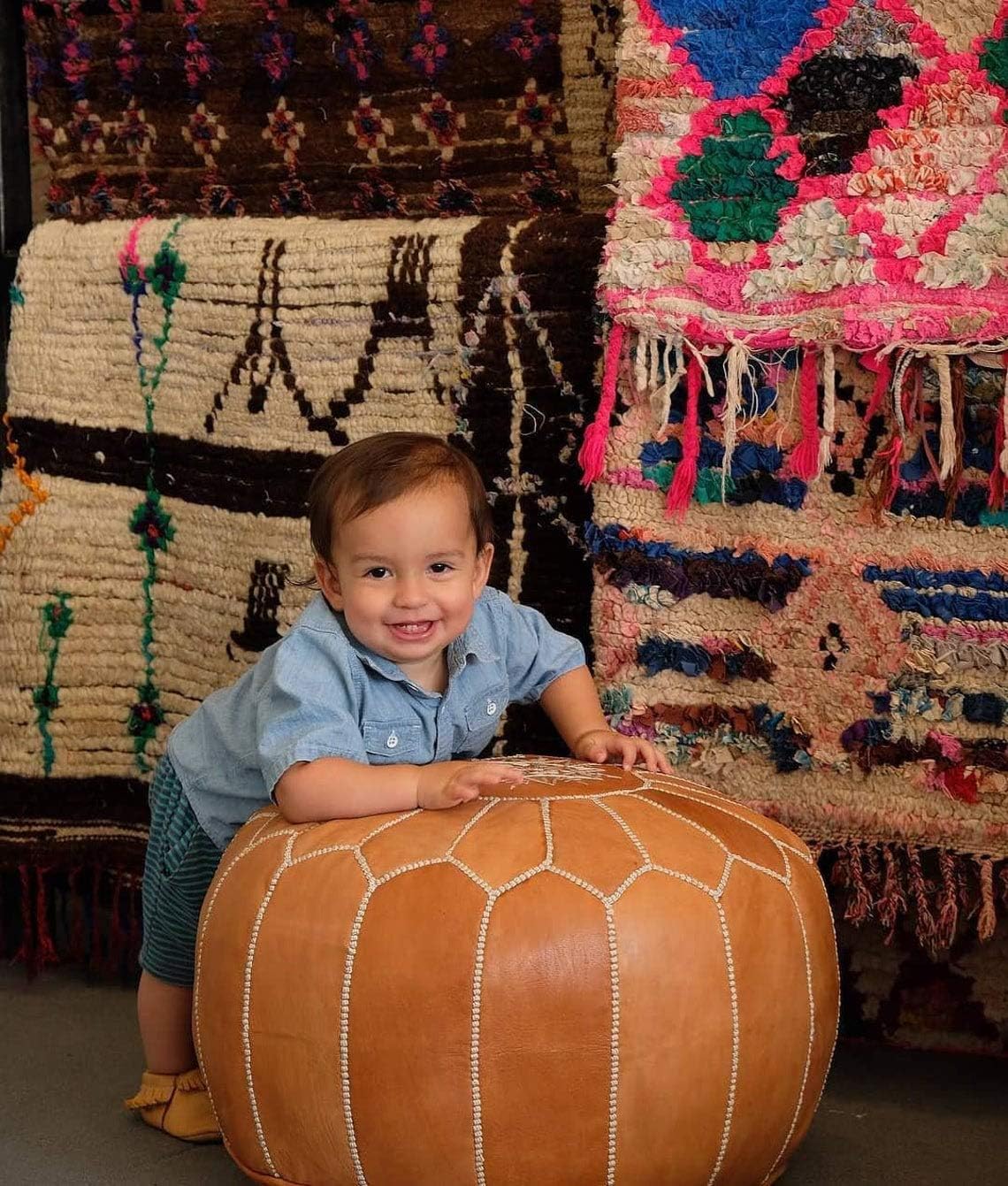 Leather Pouf Stuffed - Moroccan Ottoman Footstool, Footrest Cover - Boho Decor - Bohemian Living Room, Bedroom, Kids Room, Gift & Wedding 10 * 13 * 13 inches Light Brown