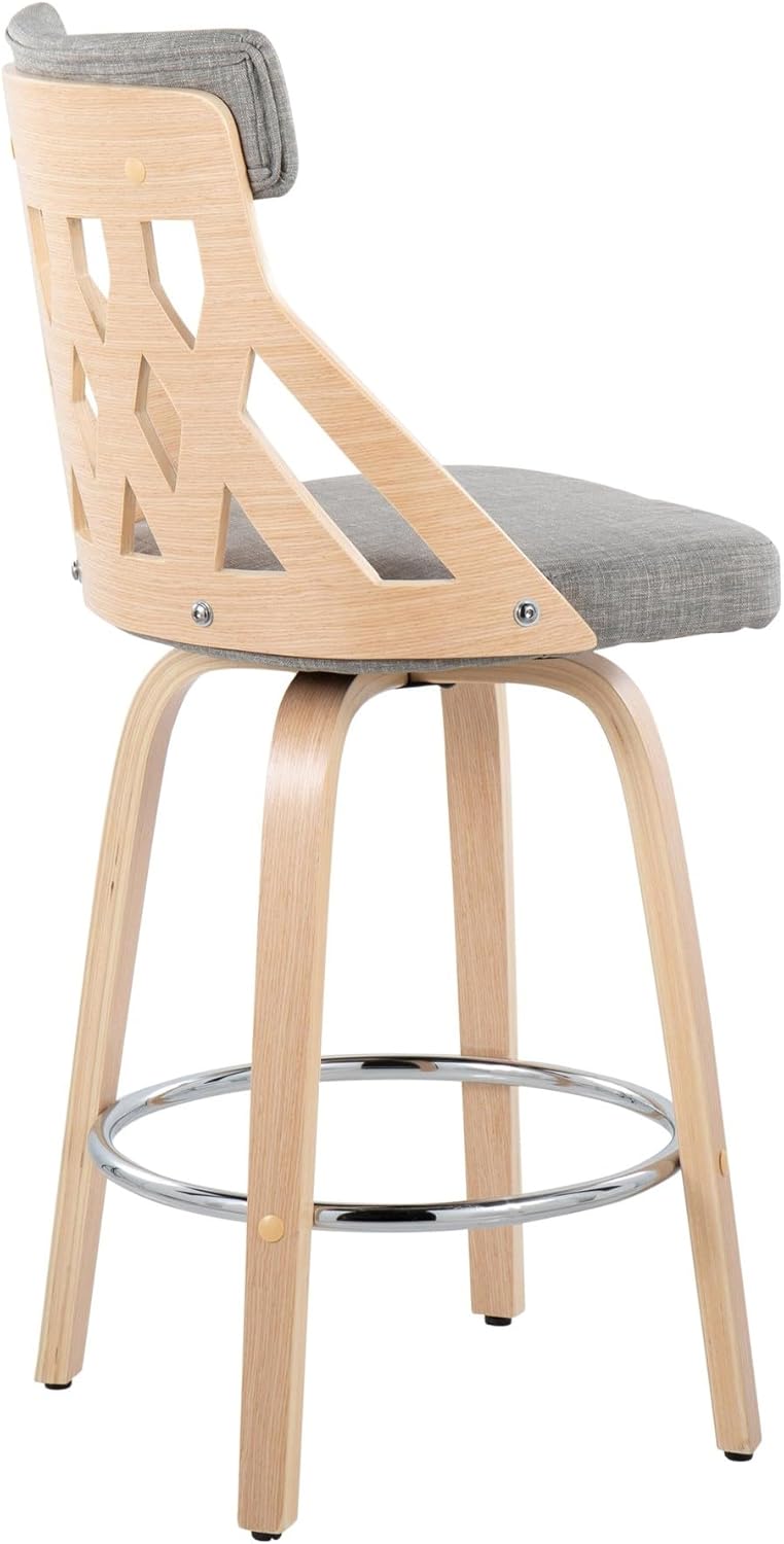 York Mid-Century Modern 26" Counter Stool in Natural Wood and Light Grey Fabric with Chrome Footrest by