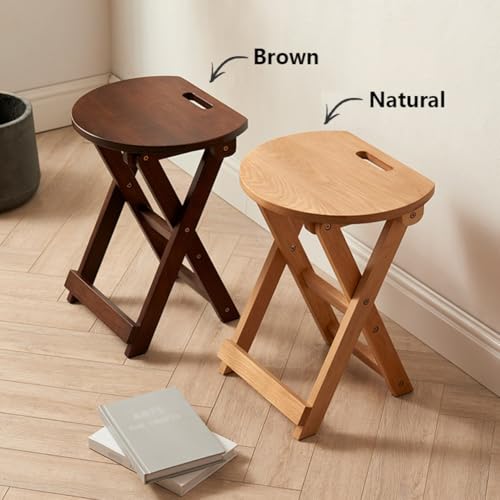 18/24in Portable Foldable Tall Stool, Wood Backless Folding Bar Chair with Handle for Kitchen, Party, Office, Camp(Natural,46cm/18in)