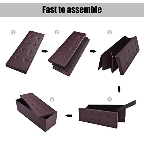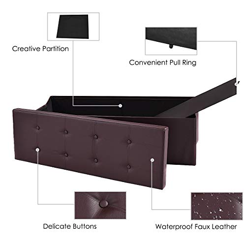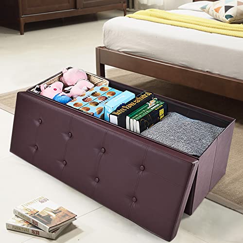 GORELAX 45" Folding Storage Ottoman Bench, Upholstered Shoe Bench Holds Up to 660lbs, Faux Leather Footstool w/Divider, 165L Toy Box Storage for Living Room, Bedroom, Entryway (Brown)