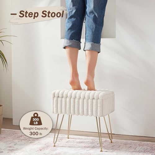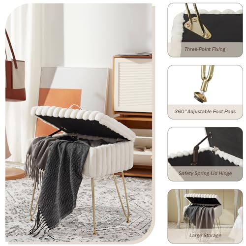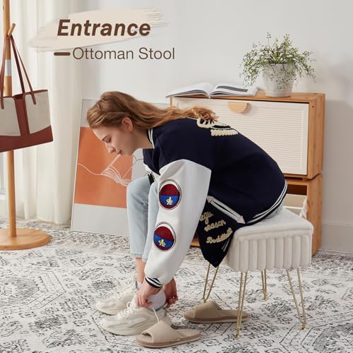 Vanity Stool Chair,Soft Faux Fur Vanity Stool for Makeup Foot Stools Ottoman for Couch Entryway Living Room Bedroom Small Bench Seat Storage Make up Chairs for Vanity Dark Brown