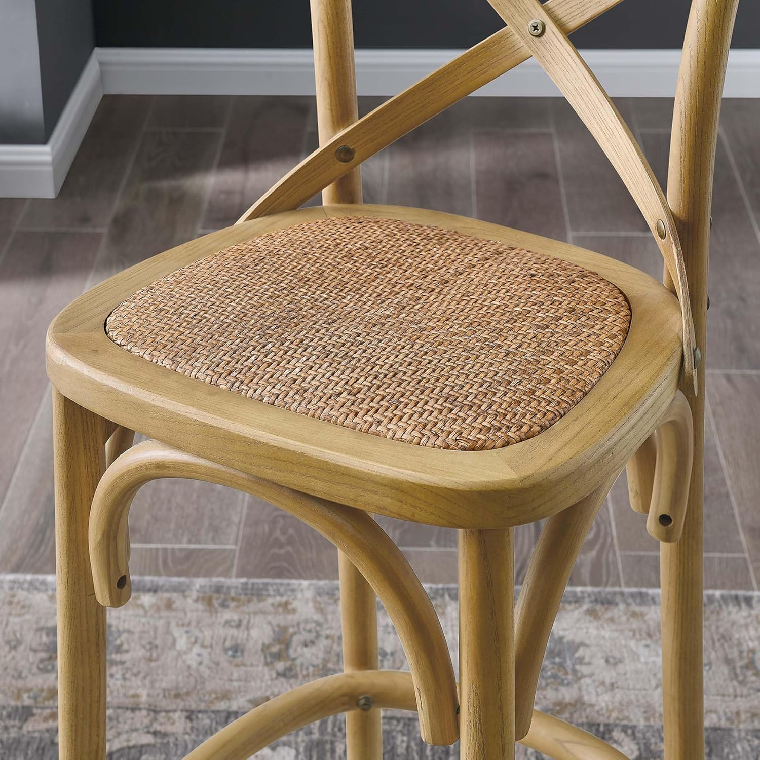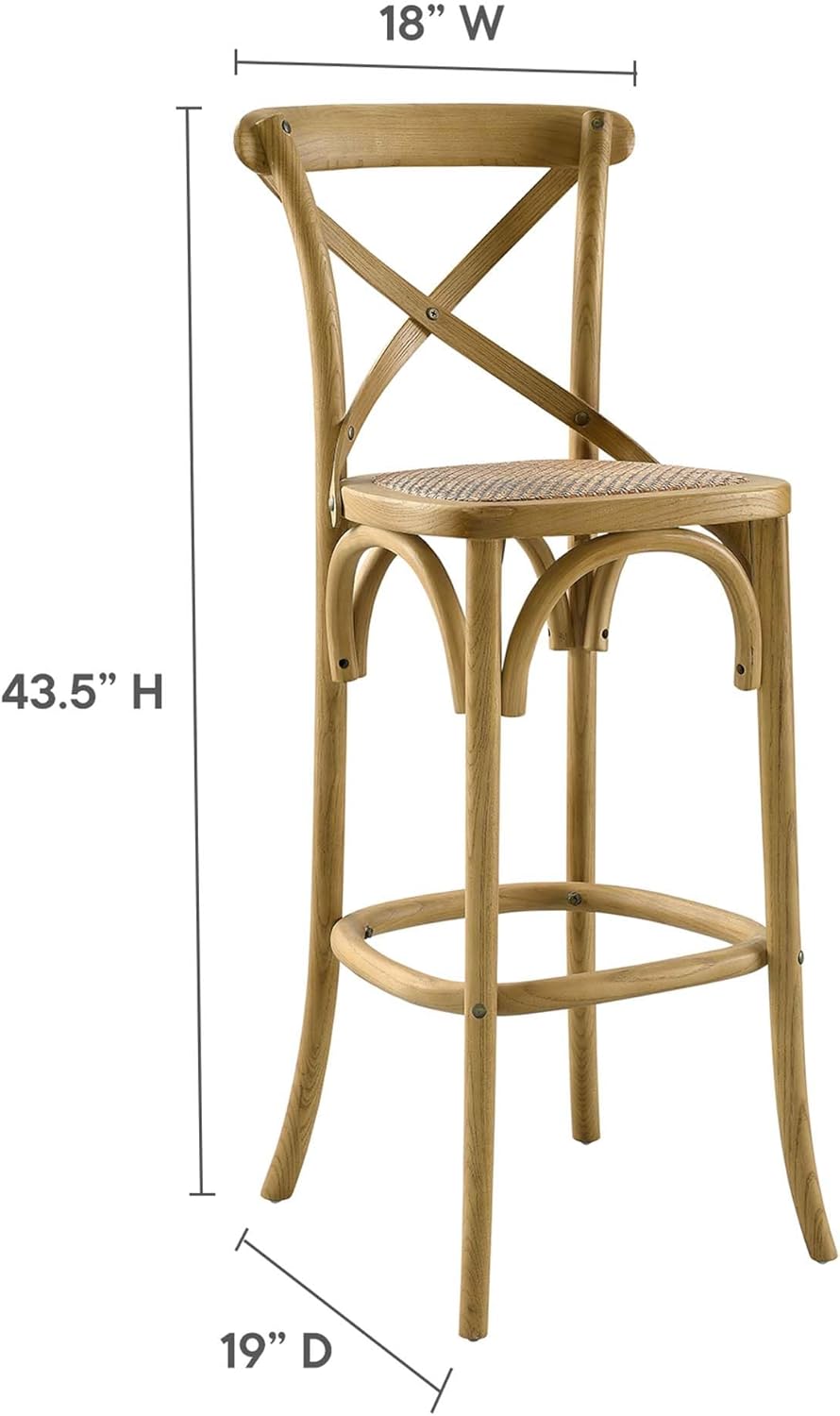 Modway Gear X-Back Wood Fully Assembled Bar Stool in Natural