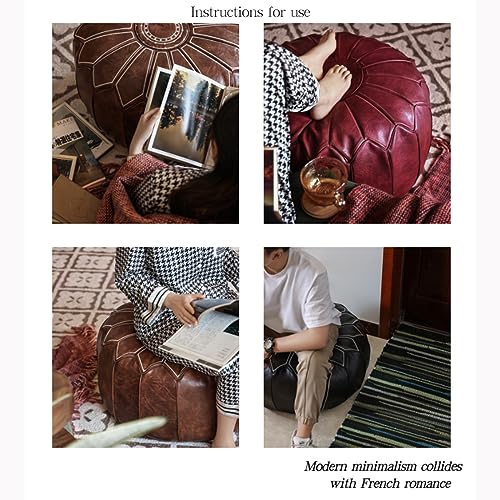 Round Pouf Ottoman Filled Velvet Cushion Foot Stool,Foot Stool,Bean Bag Floor Pouf for Bedroom Living Room Room,Brown