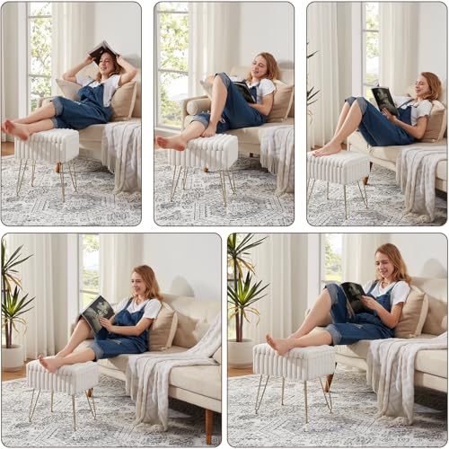 Foot Stool Foot Rest Padded Seat Stable Non Slip Ottoman Stool Small Footstool for Dressing Room Entryway Nursery Couch Home, Brown