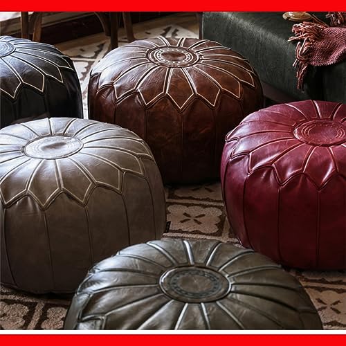 Moroccan Pouf Ottoman Cover Round Decorative Footstool Footrest Bean Bag Chair Foot Stool Rest Storage Solution Home or Wedding Gifts- Mandala Embroidered -(Empty & New)- Brown