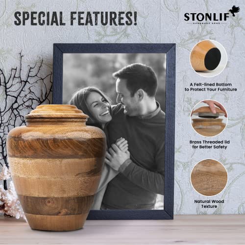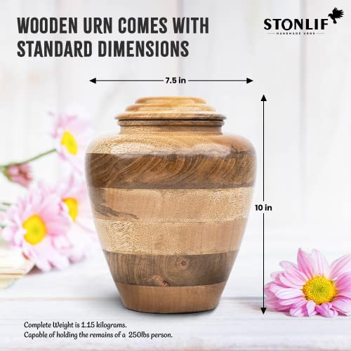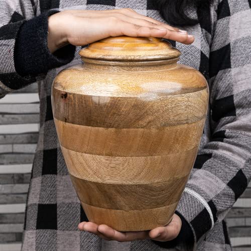 Wooden Urns for Human Ashes for Adults Upto 250 lbs | Adult - Male, Female | Cremation Memorial Ash Urn | Natural Mango Wood Large Keepsake Urn – 10.0 Inches, 1 Pc