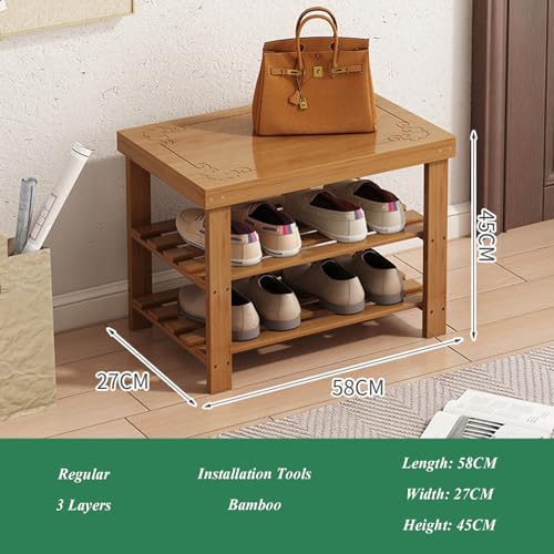 Bamboo Shoe Storage Bench, Shoe Rack with 2 Tier, Multifunctional Shoe Organizer Bench for Entryway, Mudroom, Hallway, Closet and Garage, 50x27x45cm, Grey