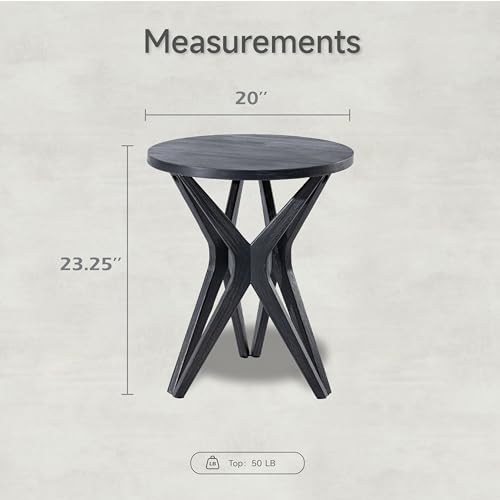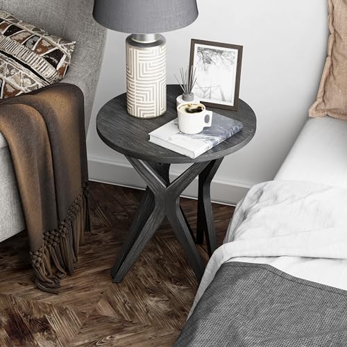 Pedestal Farmhouse End Table Set of 2, Distressed Ash Grey Top with Tripod Base for Modern Farmhouse, Boho Decor, Round