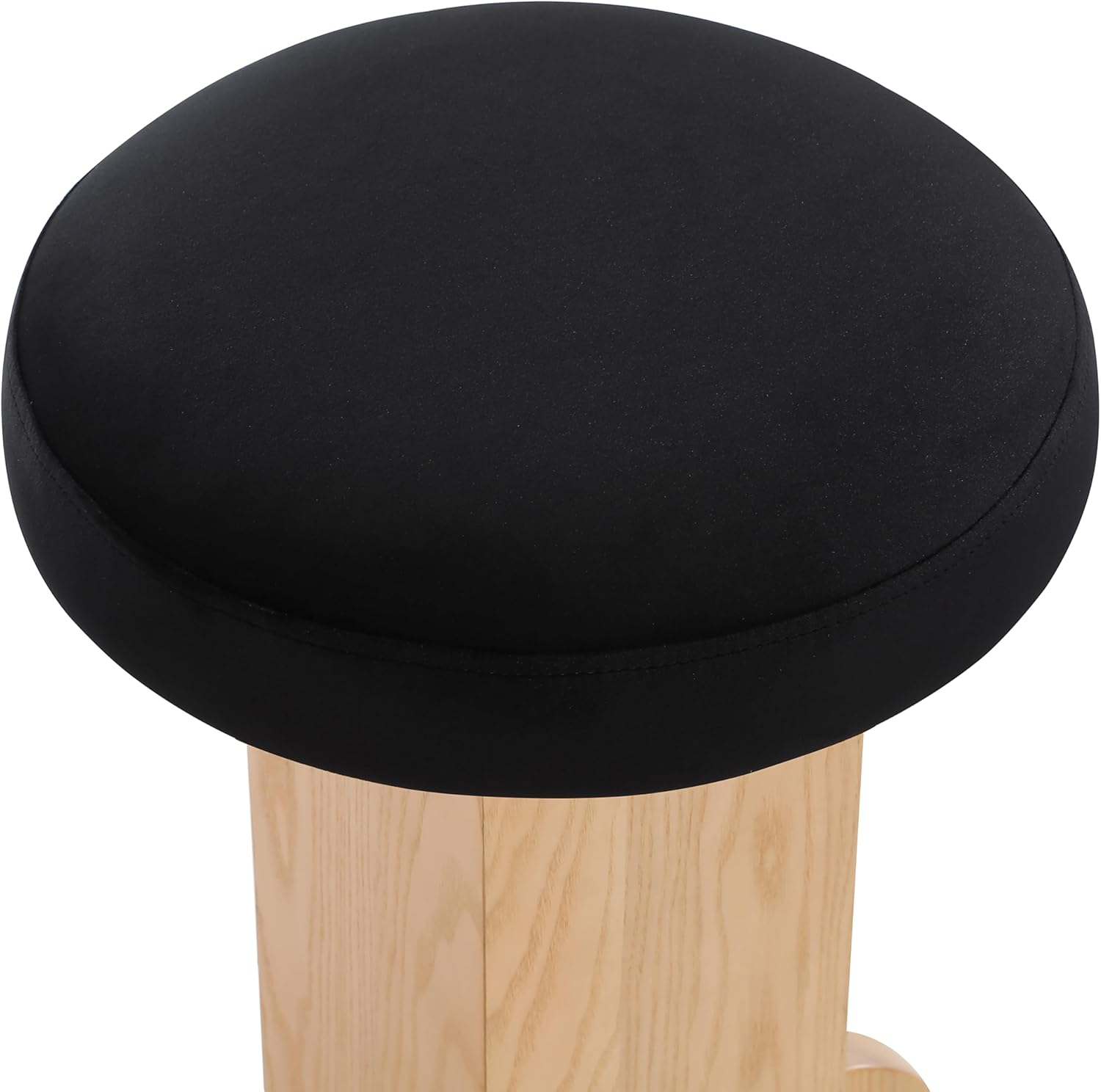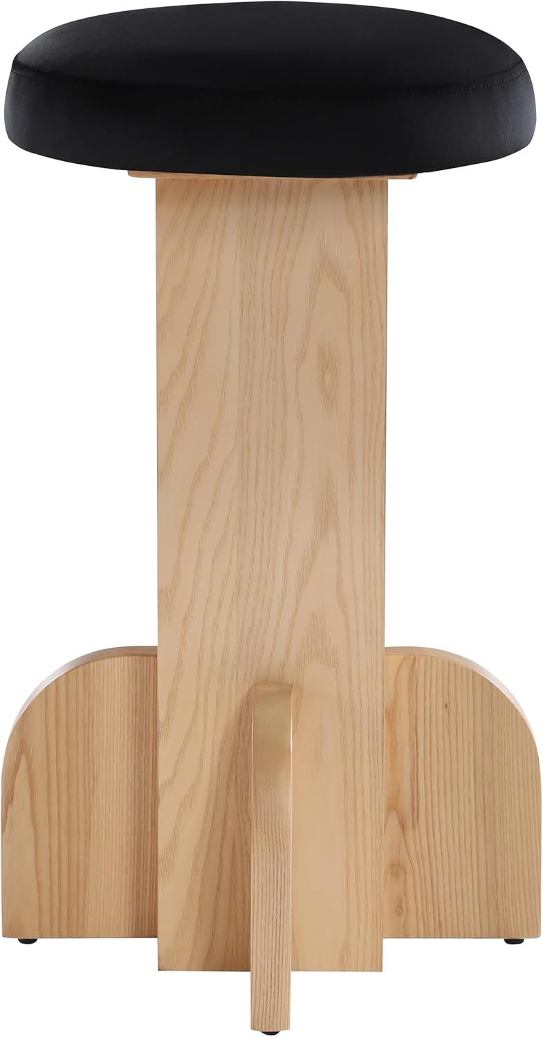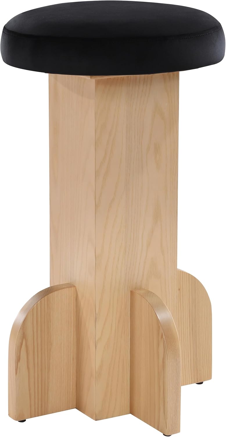 Meridian Furniture 717Black-C Wyatt Collection Art Deco Stool with Luxe Black Velvet, Ash Wood Natural Finish, 16" W x 16" D x 27.5" H, Black