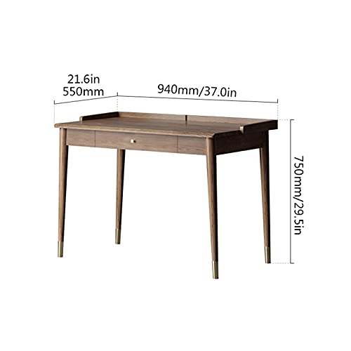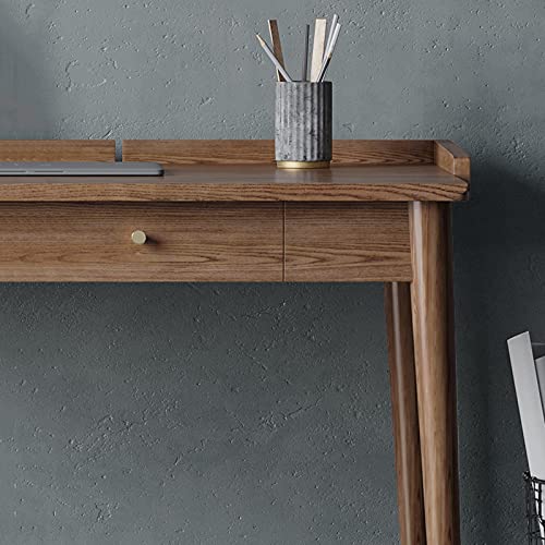 Pc Table Computer Desk Luxury Study Furniture PC Laptop Desk Simple Home Writing Desk Ash Wood Working Study Table with 2 Drawers and 3 Sides Baffle, Brass Handle Office Desk(0.94 meters)
