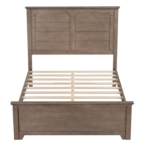 Merax Platform Bed, Full Size Farmhouse Style Wooden Bed Frame with Panel Design Headboard and Footboard for Teenager, Wood Slat Support, No Box Spring Needed, Easy Assembly, Ash Brown
