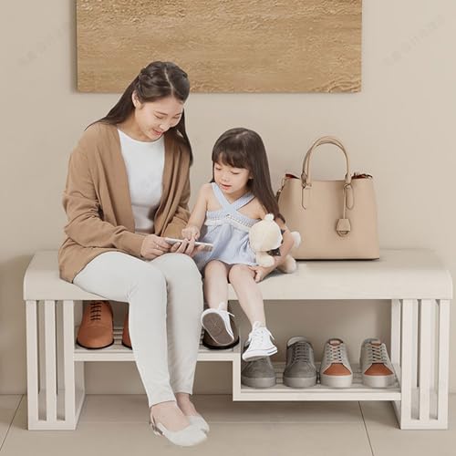 Shoe Rack for Closet Entryway Bench Shoe Storage Bench Ottoman with Storage and Seating for Living Room Bench for Bedroom End of Bed Wooden Shoe Rack Stable Structure Simple and Modern (Color : Off-w