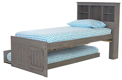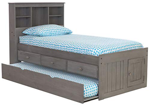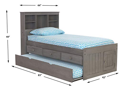 Discovery World Furniture Full Size Captain Bed | 3 Drawers, Twin Trundle | Ash Grey | Bookcase Headboard | Kids' Bedroom Furniture