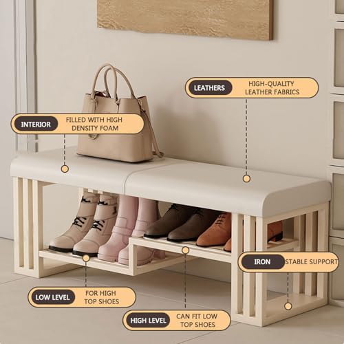 Shoe Bench Leather Entryway Bench Foyer Shoe Rack Bench with Padded Seat Long Bench 2 Tier Storage Bench Load 300kg for Mudroom