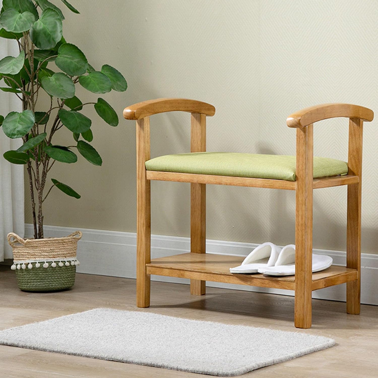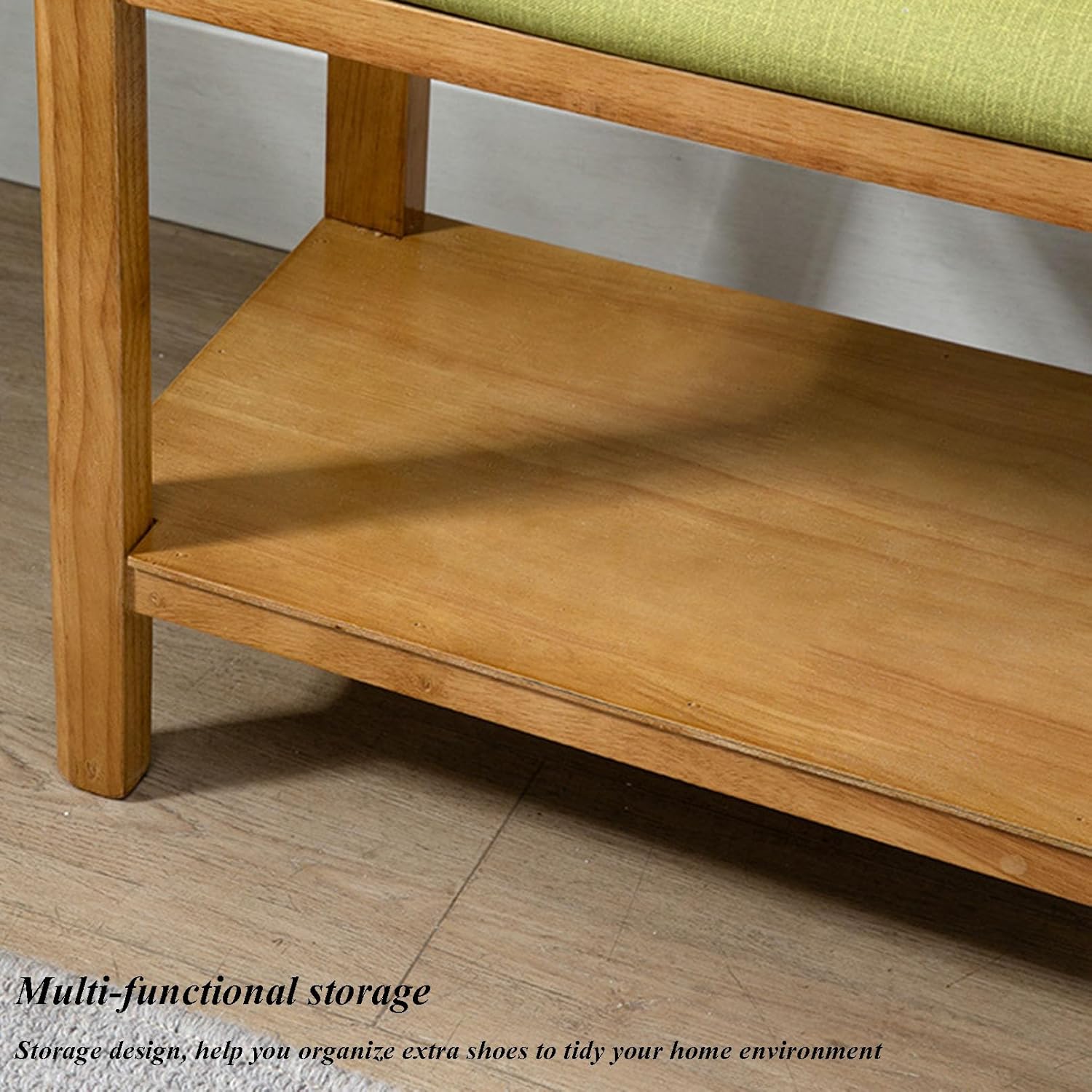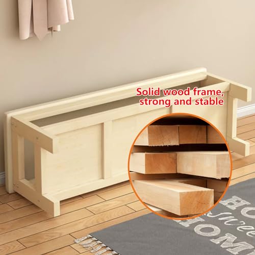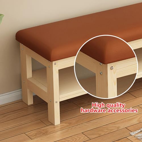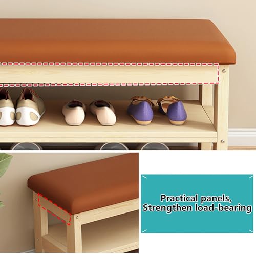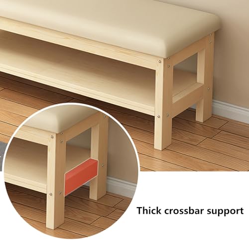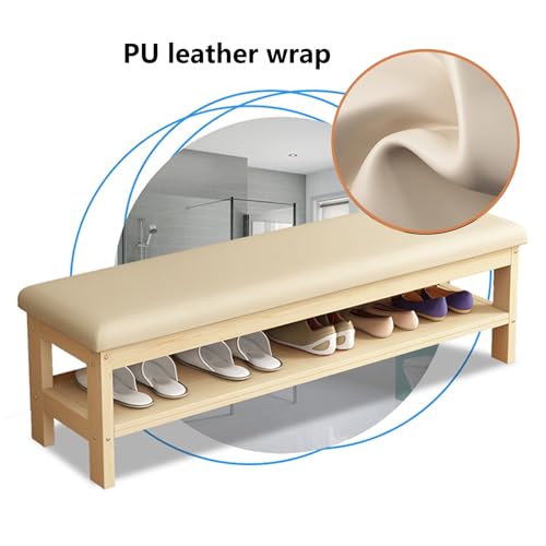 Shoe Storage Bench, Solid Wood Shoe Bench with Leather Seat, Upholstered Entryway Bench, End of Bed Bench with Shelf, for Entryway, Hallway, Mudroom, Closet, Apartment (Color : Beige, Size :