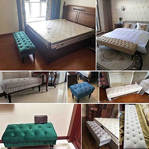Storage Bench Velvet Suit a Bedroom Soft mat Tufted Bench Sitting Room Porch Oval Footstool Beige White Teddy Velvet