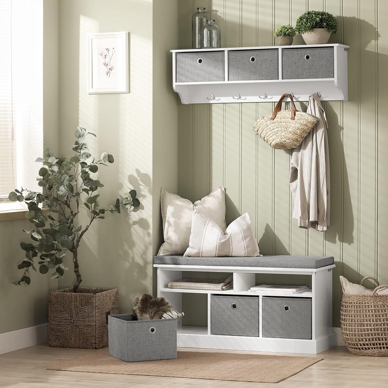 Haotian Shoe Bench and Wall Coat Hooks with Shelf Combo FSR67-HG+FRG282-W