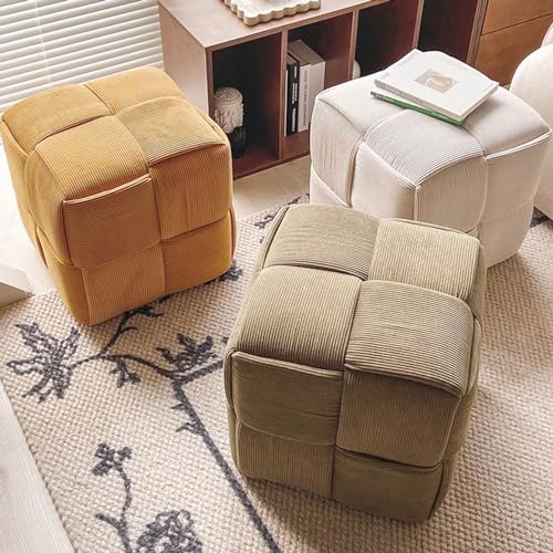 Entryway Bench, Corduroy Fabric Upholstered Footstool for Bedroom, Creativity Ottoman End of Bed, Padded Benches for Living Room, Foyer, Mudroom, Hallway, 70X38X38CM