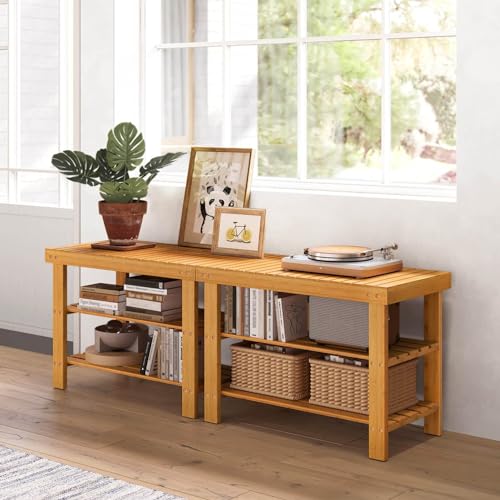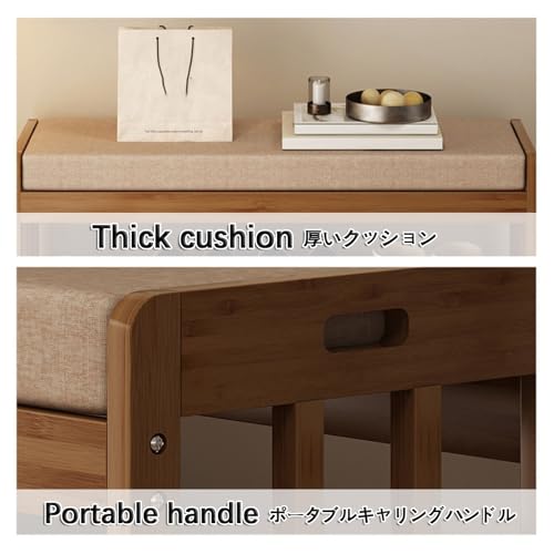 Bamboo Shoe Bench, Entryway Storage Bench with Wide and Smooth Seat, 4-Tier Shoe Rack Organizer Cabinet for Living Room, Bedroom, Mudroom, Closet and Garage