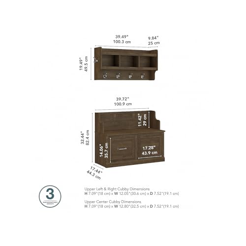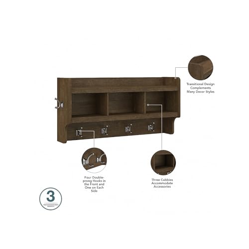 kathy ireland Home by Bush Furniture Woodland 32-Inch Shoe Storage Bench and Coat Rack with 4 Shelves, Ash Brown (WDL009ABR)