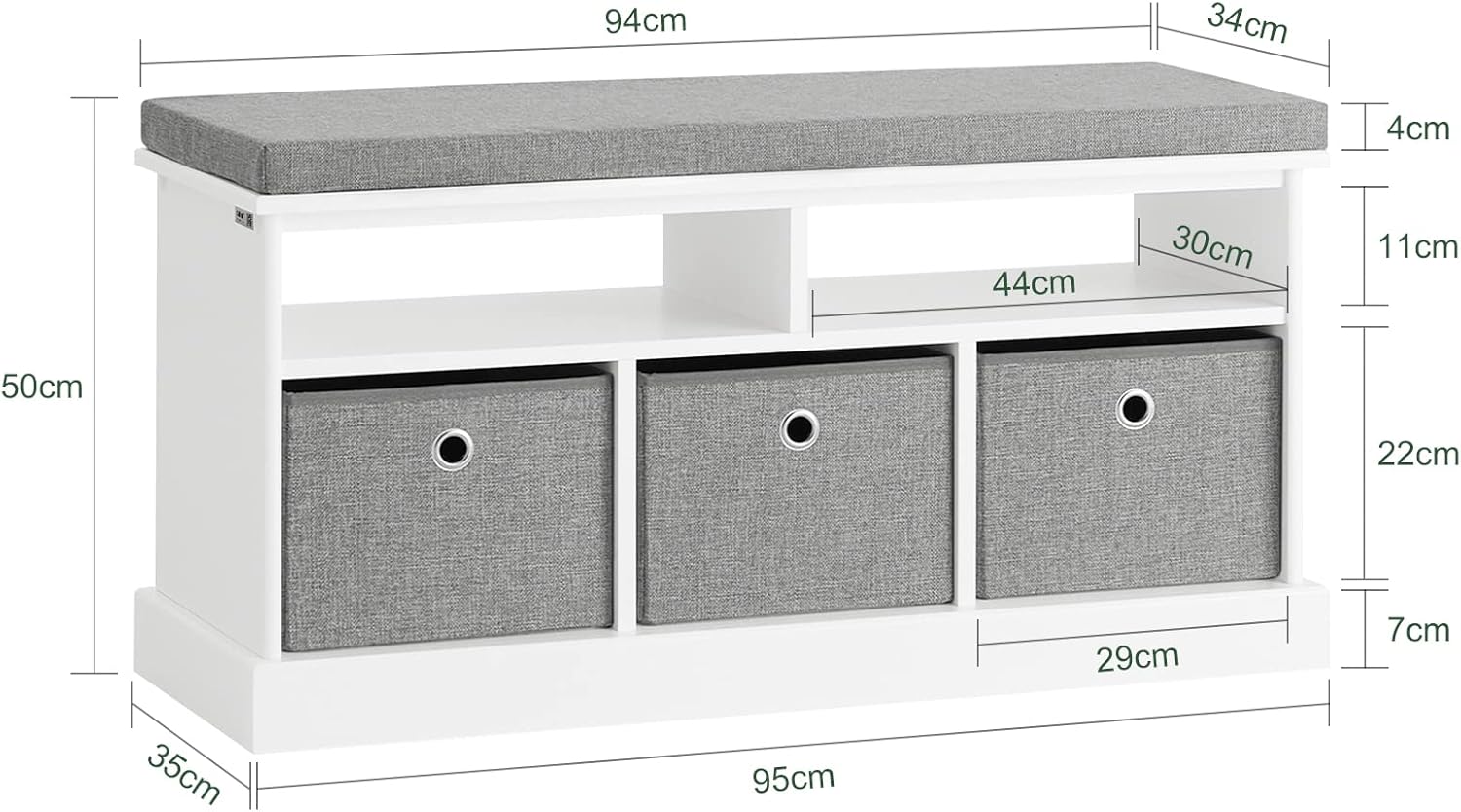 Storage Bench, Entryway Shoe Rack with Cushion and Open Compartments, Shoe Organizer Bench for Living Room, Bedroom, Hallway, Closet, Garage Mud Room